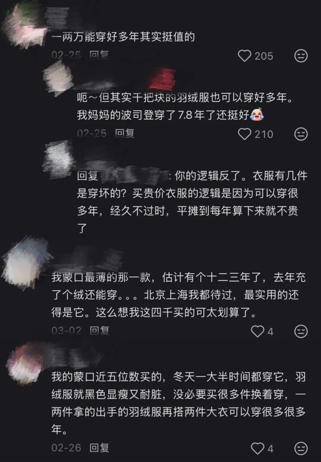 原创首发 | 金角财经 作者 | 温颖颖 这个冬天,羽绒服市场正在上演一场魔幻现实主义的戏码。 一边是加拿大鹅遭遇增长瓶颈,大股东贝恩资本考虑抛售股份。过去三个财年,其销售额增速从21.54%骤降至1.1%,寒意逼人。 另一边却是Moncler门店前排起长龙。有上海网友分享,需表明“真心想买”才能进店;在日本门店,等待队伍中一半是中国面孔。 2025上半年,针对“欧洲市场营收下滑”的业绩表现,Moncler集团曾解释,是因为来自中国、韩国、美国的游客变少了,“这部分的游客约占欧洲销售额的一半”。照此说法,中国人不仅在本土买爆了Moncler,消费力都溢出国门了。 更有意思的是,这种火热,与“平替当道”的消费认知形成鲜明反差。Moncler可不是加拿大鹅的“平替”。后者一件羽绒服售价约五六千到一万元,而Moncler普遍在一至两万元之间,被网友称作“羽绒界的爱马仕”“羽皇”。 这冷热分明的对比,像极了当下的消费现状:到底是中产没钱了,还是我没钱了? “LV看了都羡慕” 短款亮色羽绒服、水洗蓝牛仔裤、厚底黄靴、耳机里放着New Wave——上世纪80年代的欧美青年,几乎都穿着这样一身打扮。 那件亮色羽绒服,大多来自Moncler。诞生于1952年法国的一个冬天,Moncler至今已走过73年。 基于时代特性与悠长历史,有人形容Moncler是“充满经济繁荣气息的产物”,这似乎已暗示出Moncler跻身奢侈品市场的原因之一——有无法替代的文化内核,与爱马仕、LV有着某些相似。 但众所周知,眼下并不是奢侈品的好时代了。 2023年,LVMH销售收入同比仅增9%,其中包含宝格丽、蒂芙尼等子品牌在内的珠宝与腕表业务只涨了3%;爱马仕稍好,涨了15.7%。然而,Moncler集团却逆势增长17%,主品牌Moncler收入同比涨19%,远超行业均值。 尤其在中国市场。那一年,中国消费降级的声音不绝于耳,蜜雪冰城爆红、茅台价格走低,但Moncler的亚洲市场收入占比却仍高达50.2%。 到了2025年三季度,中国依然是Moncler的增长引擎。集团财报写道,国庆期间的销售与去年基本持平,“中国消费者的购买动能依旧稳定”。 Moncler太能打了,连LV都想“入股学习”。 2024年9月,LVMH集团宣布入股Moncler最大股东控股的Double R公司10%的股份;一年后,Double R公司在LVMH集团的资金支持下,继续增持Moncler集团的股票,截至2025年9月,LVMH已间接持有Moncler约4.004%的股份。 Moncler为何这么贵还能卖得这么好? 表面上看,是羽绒服作为功能性服饰,对技术、保暖、防水性能的要求高于一般时装,受消费降级的影响整体较小。数据显示,2015-2020年中国羽绒服平均单价从432元升至656元,2023年再度升至881元。 在“一分钱一分货”的心理暗示下,消费者对羽绒的价格更具包容性。去年《有意思报告》的调查中,近9成受访者选购羽绒的首要标准是“保暖”,只有不到一半的人会看“价格”。 此外,“便宜冬装的穿起来显廉价”的心理,也影响着普通人的消费决策。韩剧《小小姐》里有一段对话,就诠释了这种心理——“如果你有钱,想买什么?”“冬季大衣吧。夏装面料轻薄,便宜的也能勉强穿得和别人差不多,冬装很容易看出一个人贫穷与否。” 只是,羽绒品类的共性不足以完全解释Moncler的生命力。要不然,加拿大鹅也不会掉队。 另一种性价比 “一两万的衣服能穿好多年,匀下来也不贵吧。” 在社交平台上,不少Moncler消费者把这称为“另一种性价比”。他们的逻辑很简单:便宜不等于划算,耐穿才是。 “我觉得将便宜与性价比划等号的逻辑反了,买贵的衣服恰恰是因为它耐穿。”有网友表示,他只有两件羽绒,都是耐脏的黑色,一到冬天就反复“霍霍”它们。 还有人晒出自己穿了十几年的Moncler,堪比“传家宝”,“估计有十二三年了,去年充了个绒还能继续穿。以前4千块买的,花得可太值了”。奢侈品养护店也透露,Moncler顾客修衣、充绒的比例远高于其他品牌。 与此同时,Moncler的实体店依然火爆——这在电商主导的时代极为罕见。 去年11月,北京SKP Moncler男装店发布了“门店销售额破亿”的庆祝贴;12月,北京三里屯店、国贸店也宣布销售额破亿。若按单件羽绒1.5万元计算,其一家实体店就能卖出超6500件羽绒。 截至2025年9月底,Moncler在全球共有294 家门店,其中近一半位于亚洲。Moncler表示,中国市场已成为零售体系的“核心支点”。 一般的消费逻辑里,愿意出门去实体店,意味着消费者更为重视衣服的质量、工艺和售后服务,这些最终都与耐用性挂钩。 而当“户外运动”成为新风潮,Moncler的竞争力再次被强化。 Moncler从一开始,便是为户外登山、滑雪运动研发的。 上世纪50年代在阿尔卑斯山区,法国为激发当地人的运动激情,推出了一项全民计划,成员们有机会参加各种山地运动。两位来自Monestier de Clermon小镇的雪具制造商人Rene Ramillom、滑雪教练Andre Vincent也参与其中,为了应对当地的极端天气,他们设计了一款以“鸭颈下到胸腹之间的绒毛”为填充物的羽绒服,并用小镇缩写Moncler来命名。 据悉,该部位的鸭绒羽梗少、纤维长、蓬松度更高,让羽绒服更轻薄、更保暖,由此受到登山爱好者的欢迎。 1968年,法国滑雪队的队员穿着Moncler参加冬奥会。从三枚闪耀的金牌被垂挂在Moncler夹克胸前的那一刻起,Moncler便成为了户外运动的代表品牌之一。 时间来到当下,尽管“奢侈品”背后的品牌信仰,逐渐不再能吸引年轻人,但“奢侈品+户外”的结合体,却因同时展现出高端与