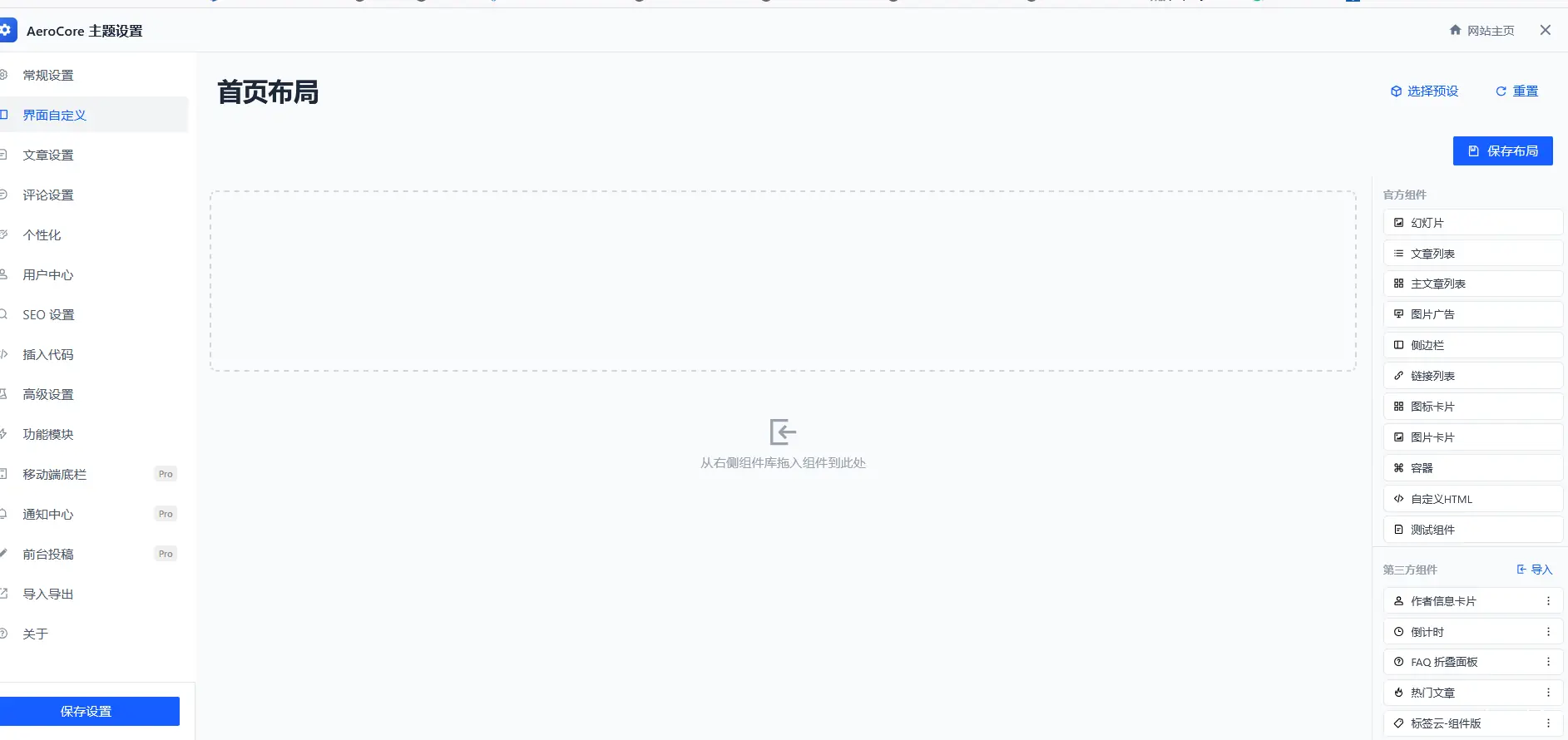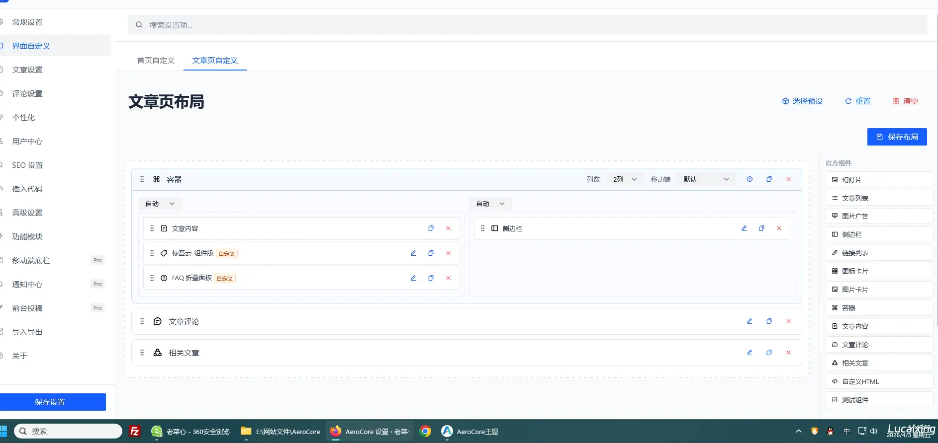 1.AeroCore主题的自定义HTML组件在保存时,会通过JavaScript将您的HTML代码序列化并存储到数据库